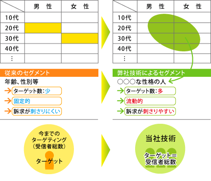 ●年令・性別等の固定的なターゲットの切り口を変革できる
